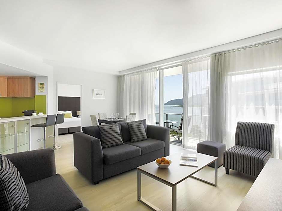 This is an interconnecting one-bedroom apartment and double room. It features a private balcony with city, hinterland or pool views. It has a fully equipped kitchen and laundry facilities.